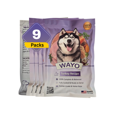 WaYo 9 pack BEEF, Chicken, Turkey Meals for Dogs - 12 Oz Grass-Fed Premium Meat - Ready-to-Serve - No Fillers or Art. Additives - All Life Stages - High-Protein - Human-Grade - Made in USA