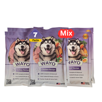WaYo 7 pack BEEF, Chicken, Turkey Meals for Dogs - 12 Oz Grass-Fed Premium Meat - Ready-to-Serve - No Fillers or Art. Additives - All Life Stages - High-Protein - Human-Grade - Made in USA