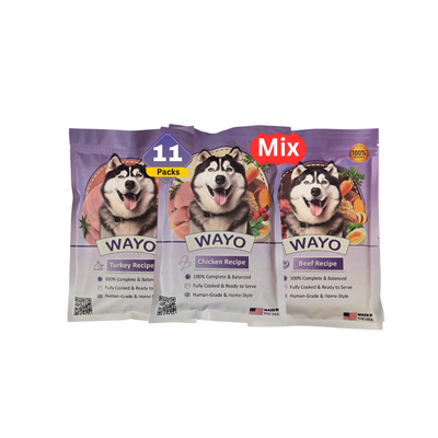 WaYo 11 pack BEEF, Chicken, Turkey Meals for Dogs - 12 Oz Grass-Fed Premium Meat - Ready-to-Serve - No Fillers or Art. Additives - All Life Stages - High-Protein - Human-Grade - Made in USA