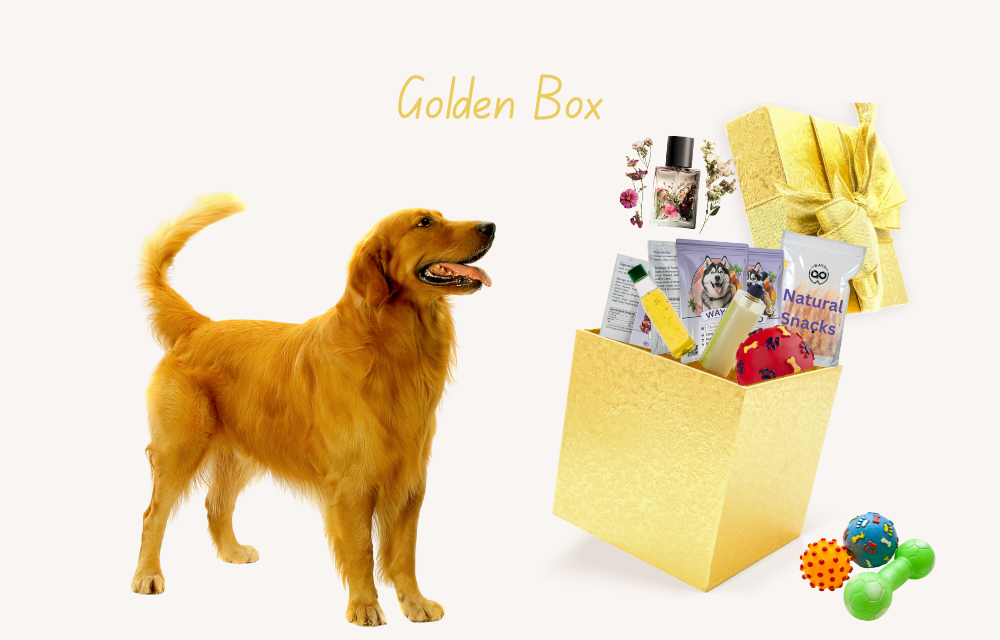 WAYO Golden Box, a premium collection made for dogs who deserve nothing less than perfection. Each box brings together fresh meals, natural care products, healthy snacks, playful toys, and a luxury surprise for dog owner's all thoughtfully selected to elevate your dog’s daily life.