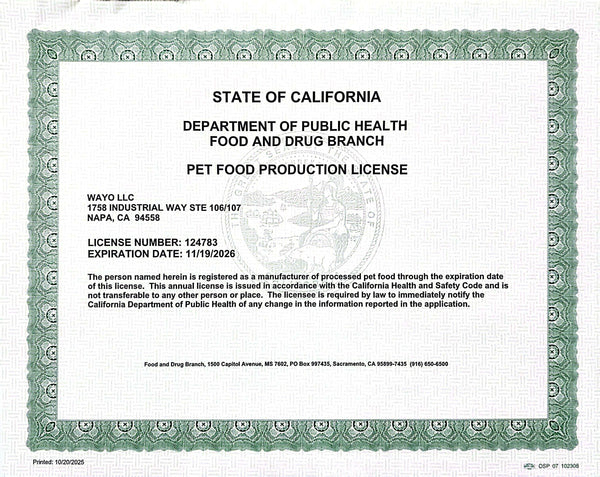 We are a California-based pet food manufacturer proudly dedicated to providing high quality, nutritious meals for dogs and cats. Every product we create at WAYO is the result of years of research, innovation, and an unbreakable commitment to excellence.